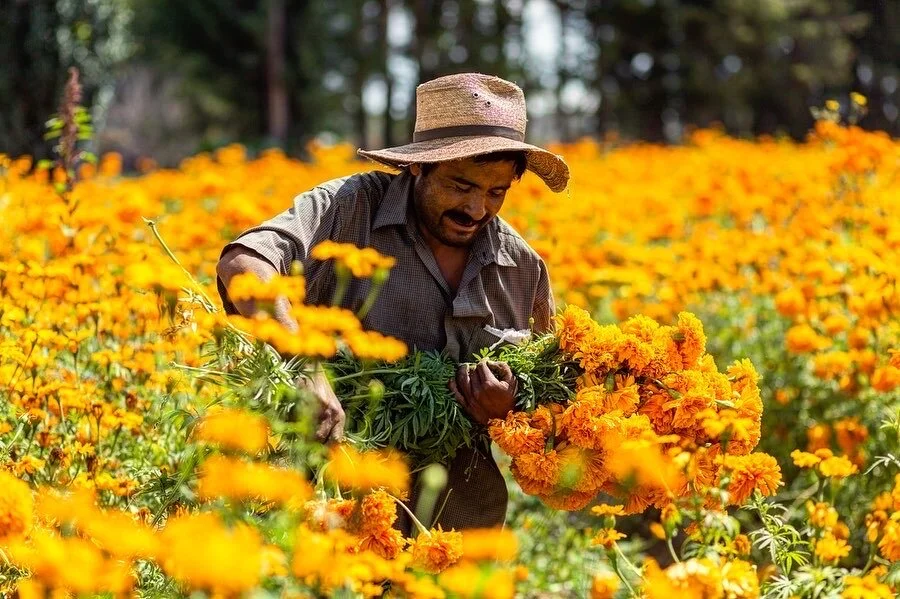 Farmers across the Puebla region of Mexico harvest cempasúchil flowers in preparation for Día de Muertos celebrations. Families use the flowers to decorate their alters to help guide the spirits of their loved ones home.